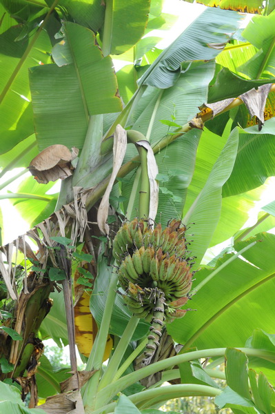 คำอธิบาย : ต้น ลำต้นเทียมสูง 3.0-3.5 เมตร เส้นผ่านศูนย์กลางลำต้นเทียมมากกว่า 15 เซนติเมตร สีของกาบลำต้นเทียมด้านนอกสีเขียว มีปื้นดำเป็นแถบกว้าง ไม่มีนวล กาบด้านในสีเหลืองซีดสม่ำเสมอ มีปื้นแดง