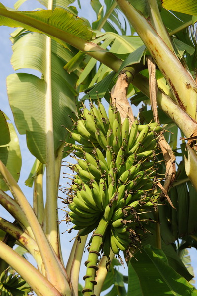 คำอธิบาย : ผล ลักษณะทรงเครือและปลายก้านช่อดอกโค้งลง ดอกมีก้านดอกสั้น ขนาดผลเล็กสั้นกลมป้อม ผลชี้ออกข้างกางเป็นระเบียบ ปลายผลมีจุกเล็กน้อย จำนวนหวีต่อเครือประมาณ 28-30 ผล ผลดิบมีสีเขียว ผลสุกสีเหลือง เนื้อผลสีเหลือง รสชาติหวาน ไม่มีเมล็ด