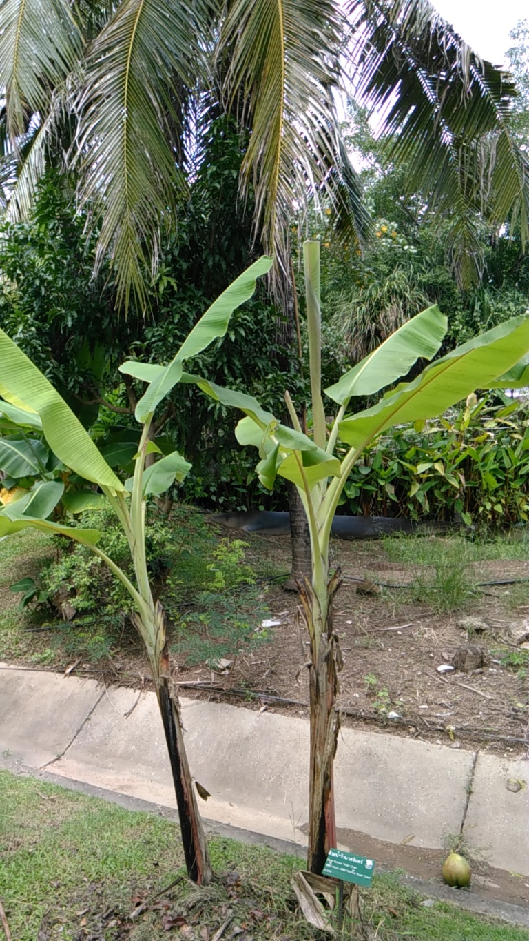 คำอธิบาย : ต้น ลำต้นเทียมสูง 2.5-3.5 ม. เส้นผ่านศูนย์กลางมากกว่า 15 ซม. โคนของกาบลำต้นเทียมีสีชมพู มีจุดปื้นสีดำเล็กน้อย ไม่มีนวล กาบด้านในสีขาว มีปื้นแดง